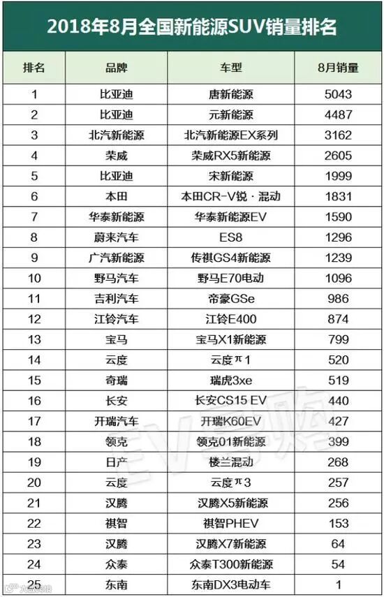 上个月排行第一的是元EV360,它凭借续航里程300KM+、丰富的配置以及同级别优秀的动力,一上市就备受欢迎;而8月份,唐DM后来居上,从7月的第二挤入第一,继续爆款趋势;8月30日,新款宋新能源上市,或许9月份会有不错的表现。