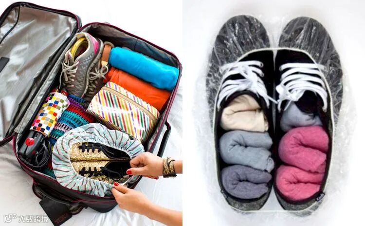 只需要用浴帽就可以让鞋子不污染到其他衣物啦。