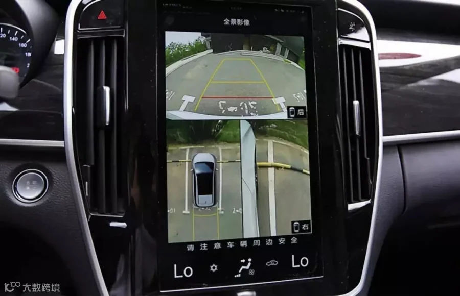 说到CarPad屏幕,由于中控台的屏幕够大,宋MAX能提供360度全景影像功能,这种功能能将汽车尾部正后方影像和车右侧影像同时展现出来,几乎不用乘客刻意去切换镜头角度,乘客能够在大屏幕上看到车身360度方向的障碍物。