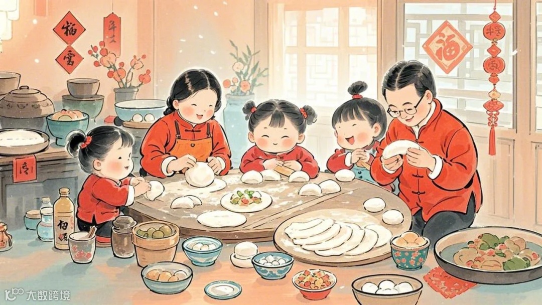 解析:描绘了除夕之夜家人团聚、欢度新春的喜庆场景。