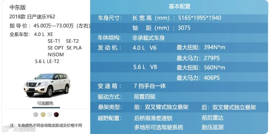 途乐Y62全系基本配置: