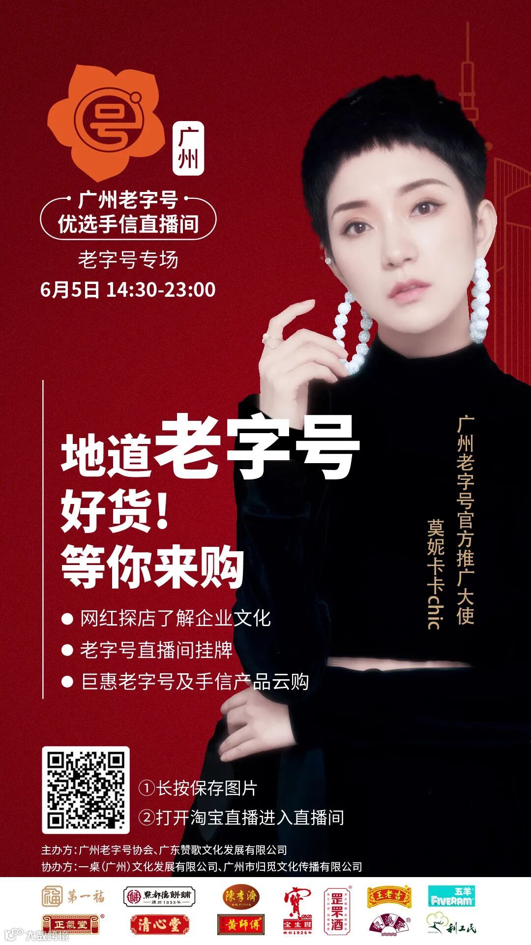 首届广州直播电商节在6月6号正式开启,由广州老字号协会、广东赞歌文化发展有限公司主办的优选手信直播专场即将开启 !由著名网红塔斯和莫妮卡卡直播带货,参与直播的有罡罘酒、点都德饼铺、王老吉、五羊、利工民等品牌。