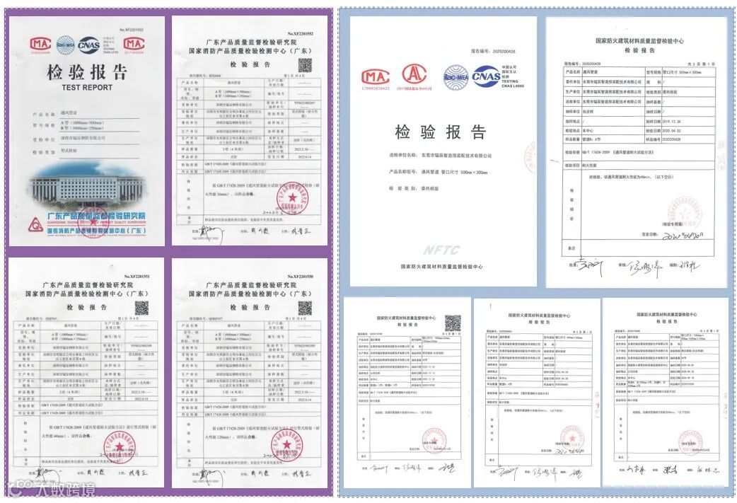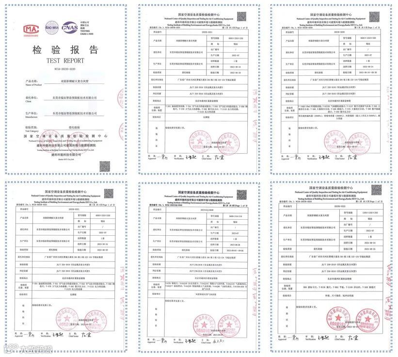 每个系列复合风管有对应的检测报告
