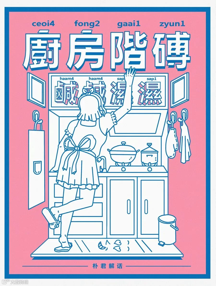 厨房的地板经常会沾到一些汤水汤汁,时间久了,这地板就变得潮润,又咸又湿了。粤语中, “阶砖” 是地板砖的一种, “咸湿” 即好色。所以“厨房阶砖,咸咸湿湿”,就是形容人好色。