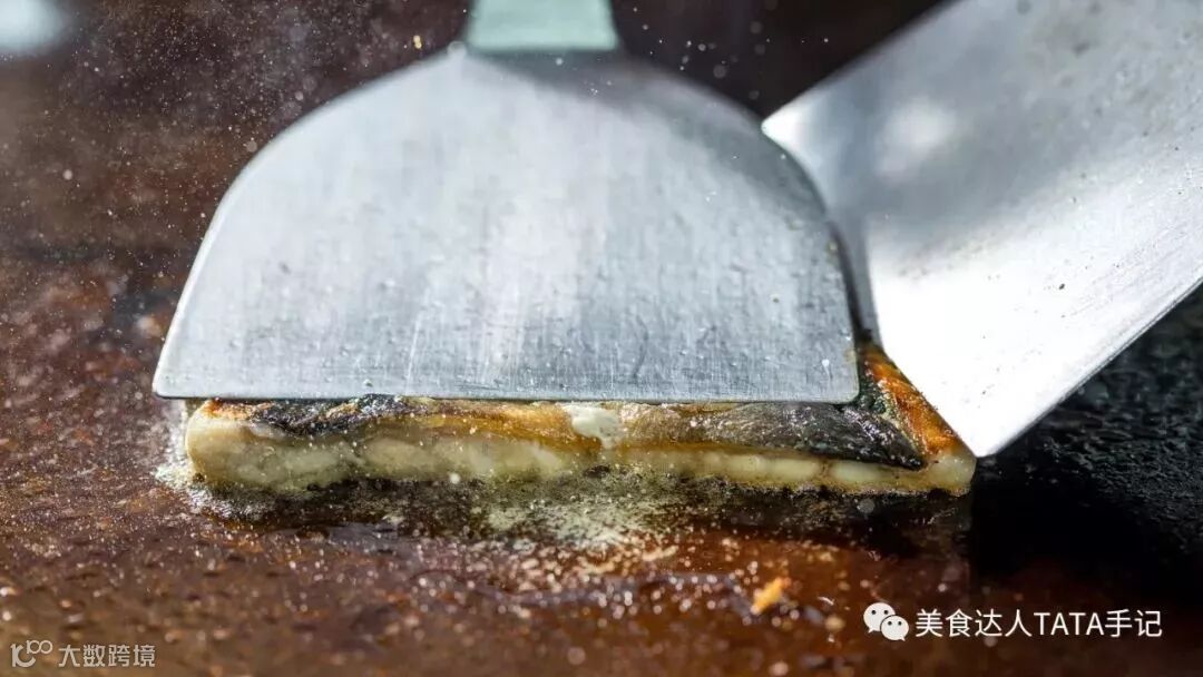 只见一阵利落的翻铲,“刷刷刷”就切成薄片,在旁边“擦擦擦”扭点粉红色喜马拉雅岩盐颗粒、再配师傅秘制的辣茄汁酱,原味或是微微酸甜,根据自己喜好选择就好。