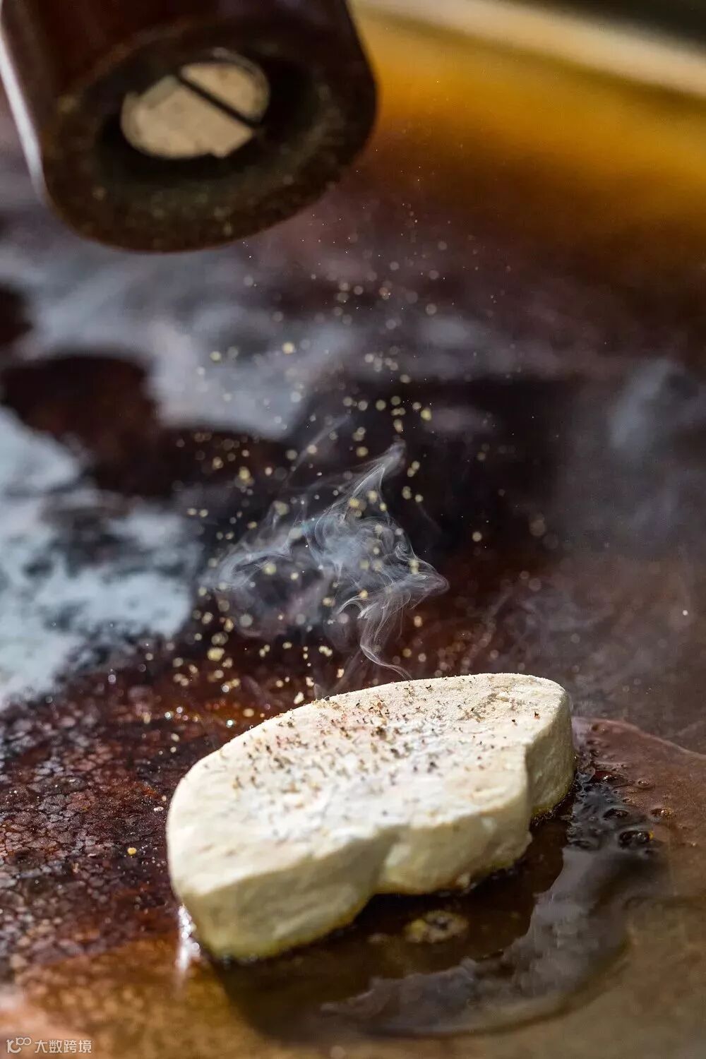 顶级法国鹅肝在铁板上慢慢渗出金黄的油脂,最后像艺术品一般点缀几滴矜贵无比的25年意大利陈醋。