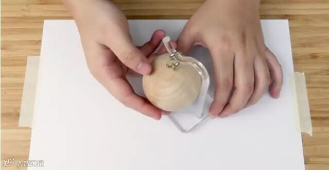 2. 先找木球上的小洞,并将羊眼钩顺时针锁入木球。可用笔辅助会更好转入。