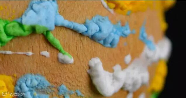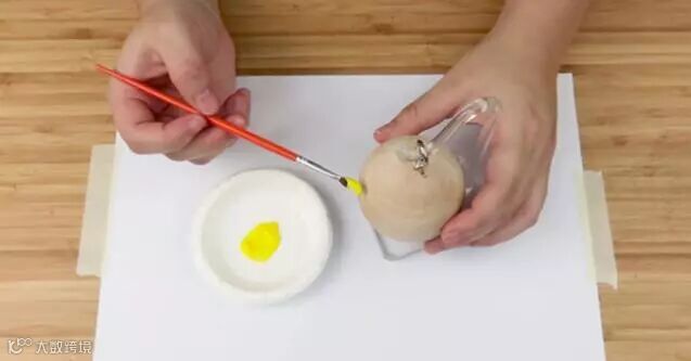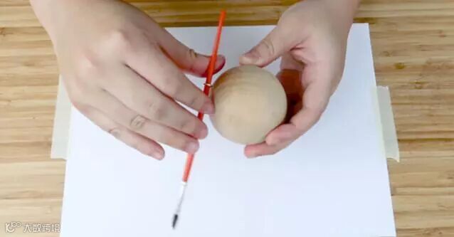 4. 发泡涂料挤出适当量在纸盘上,用画笔沾取涂于木球表面,开始创作吧!发泡大小视涂料厚薄程度,绘画时请自行调整。