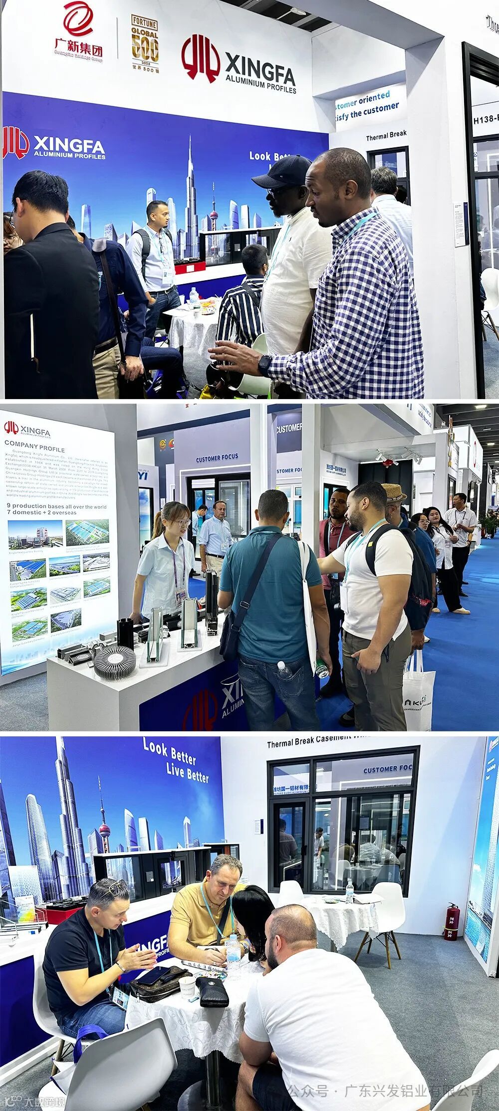 兴发铝业重视每一次与客户对话交流的机会,用心打造智能化、高端化、绿色化、人性化产品线,不断拓展发展空间,得到市场与消费者的认可。展会上,兴发铝业展台参观者络绎不绝,展品频频吸引了全球客商前来参观,就产品特性、应用领域及技术创新展开探讨,驻足了解,洽谈合作。兴发铝业海外销售团队积极向客商介绍企业产品技术特色亮点,力拓海外市场,抢全球订单。