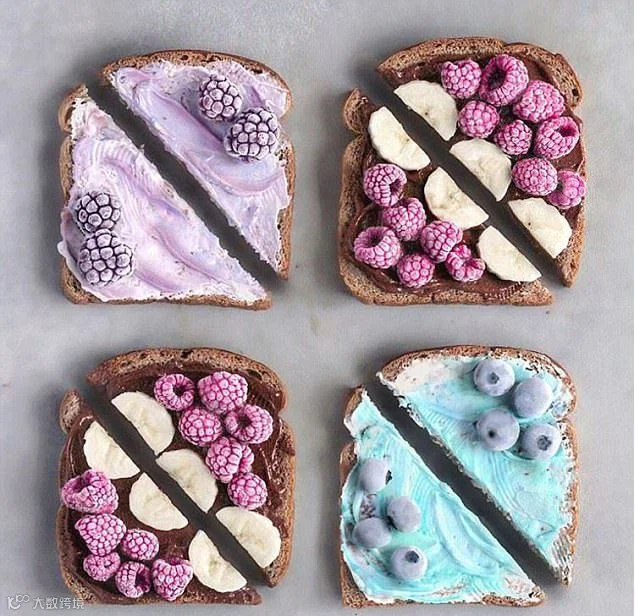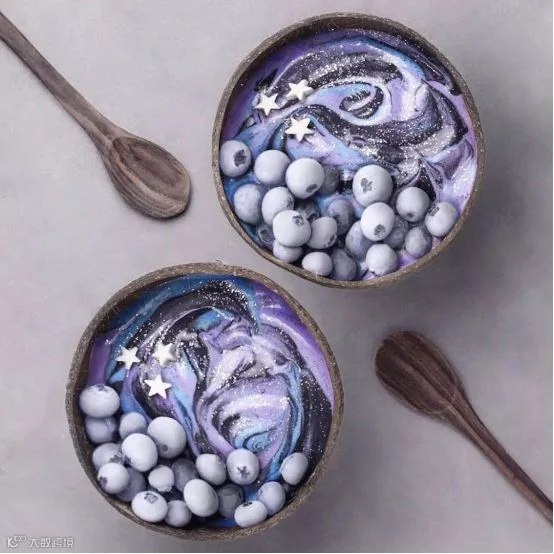 ▲抹茶酱和蓝莓酱组合在一起,竟然可以这么的梦幻
