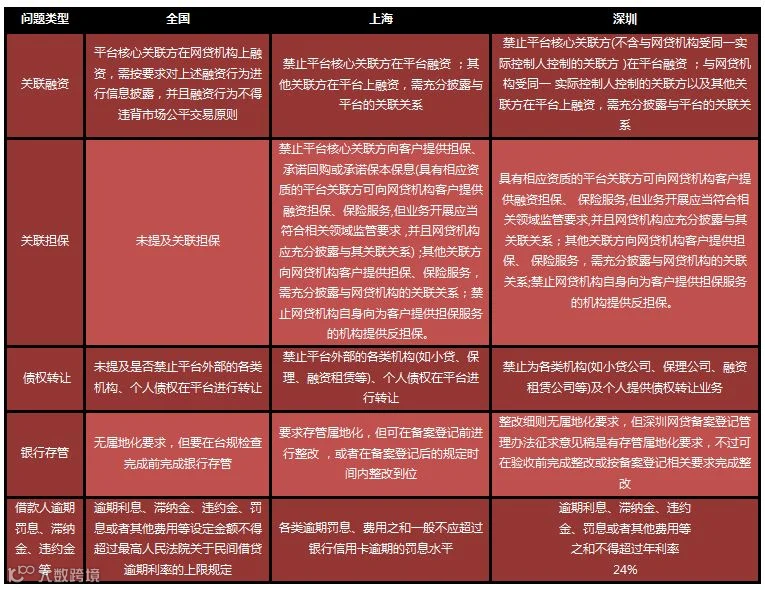 此前,北京、上海、深圳、广东等省市已经下发了各地整改验细则。其中上海、深圳作为网贷平台集中的城市,其下发的文件往往会对其他地区或全国政策文件的制定起到一定的借鉴意义,故我们将全国108条与上海168条(《上海市网络借贷信息中介机构合规审核与整改验收工作指引表》)和深圳106条(《深圳市网络借贷信息中介机构整改验收工作指引表》)分析对比,来看看具体有哪些变化。