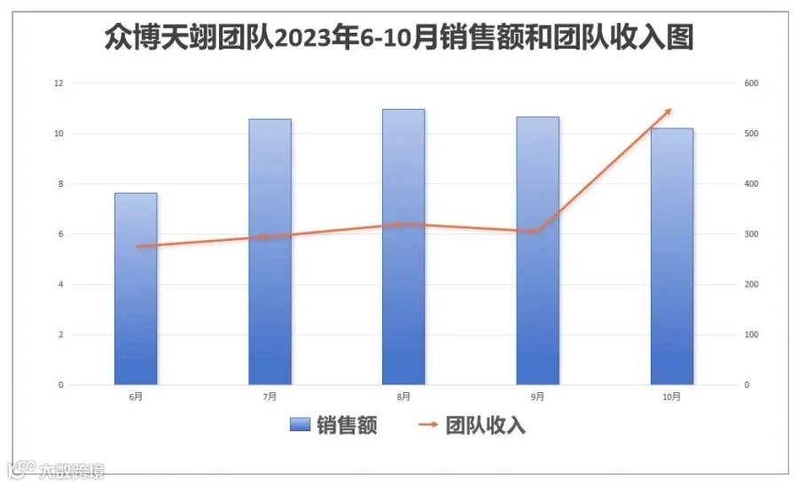 众博天翊2023年6-10月销售额和团队收入图表
