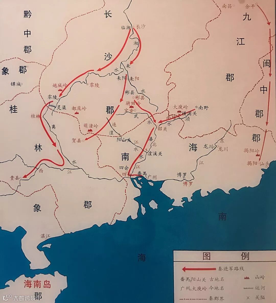 秦统一岭南进军路线图