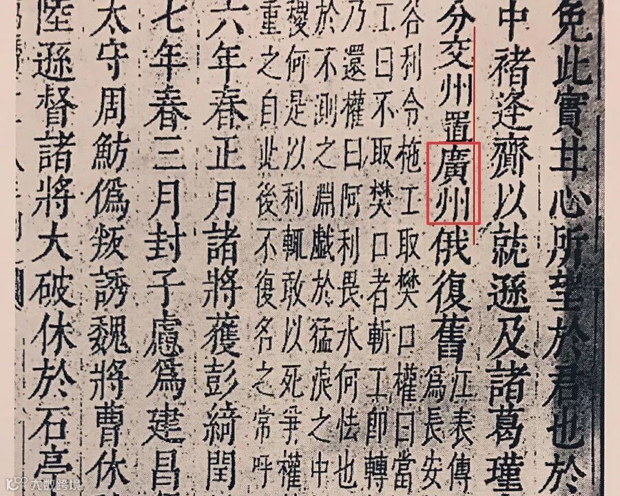 《三国志 · 吴书 · 吴主传第二》:“是岁(黄武五年,即226年),分交州置广州”。这也是史籍中“广州”一名的首次出现。