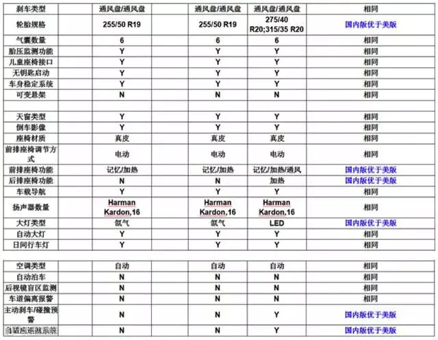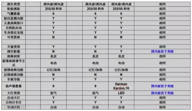 首先我们要理清楚,目前美版在售的一共是四款车型,而中规版一共是八款车型,详细请看下表: