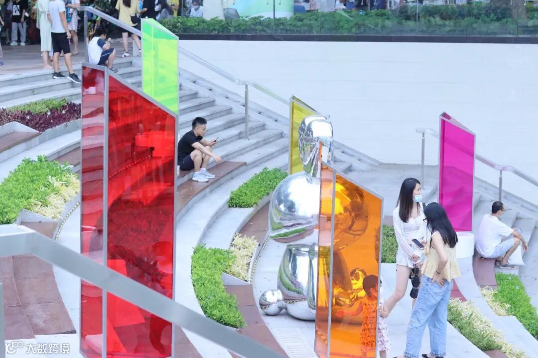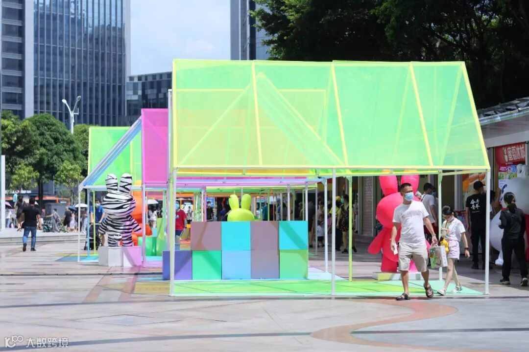 美陈大量使用亚克力材质,对颜色和光线的充分使用和充满立体设计感的主KV画面,使整场氛围达到缤纷、梦幻、希望和活力。