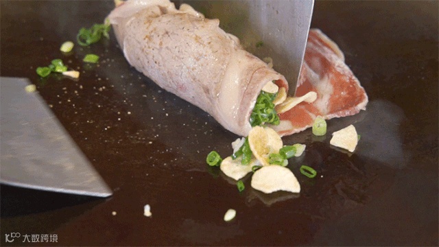 薄薄的安格斯牛肉卷在铁板上微微煎过
