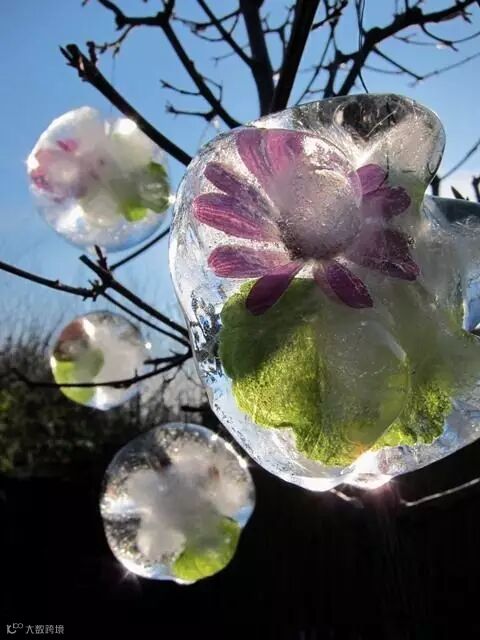 大自然似乎也舍不得这样的美景,想要冰封保存。那些晶莹剔透犹如宝石般耀眼的光芒似乎让时间也停滞。