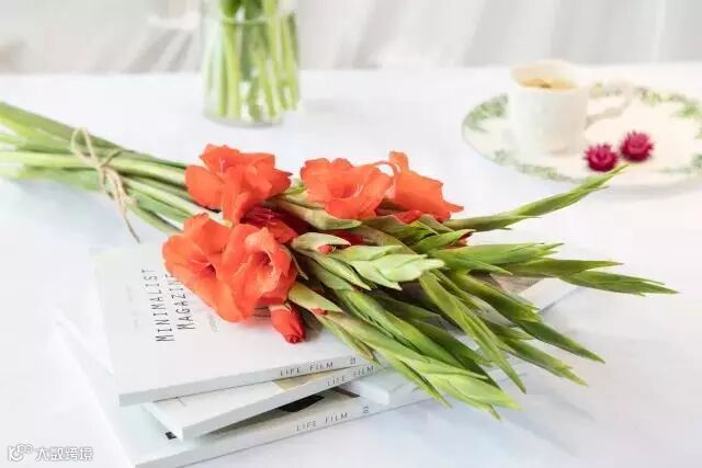 剑兰叶似长剑,花朵向上开放,气质风韵不凡,节节高升。
