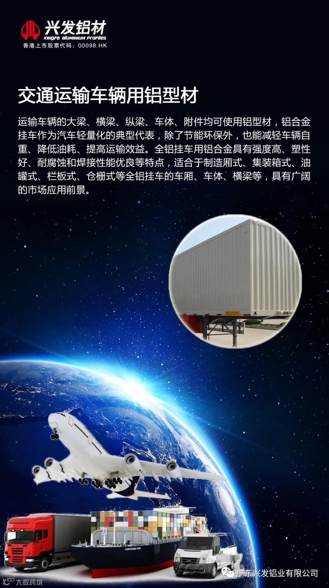 目前的交通运输业主要包括飞机客货、船舶客货运输、高速铁道和双层客运、地下铁道、重载货运、汽车客货运输、摩托车和自行车等。其中涉及到的航空航天用铝型材、船舶用铝型材、轨道车辆用铝型材、集装箱用铝型材、汽车轻量化用铝型材、自行车用铝型材等交通领域用铝型材能够有效降低自重,增加有效载荷,延长使用寿命,对节能减排、提高运输行业经济效益和运输效率具有重要意义。