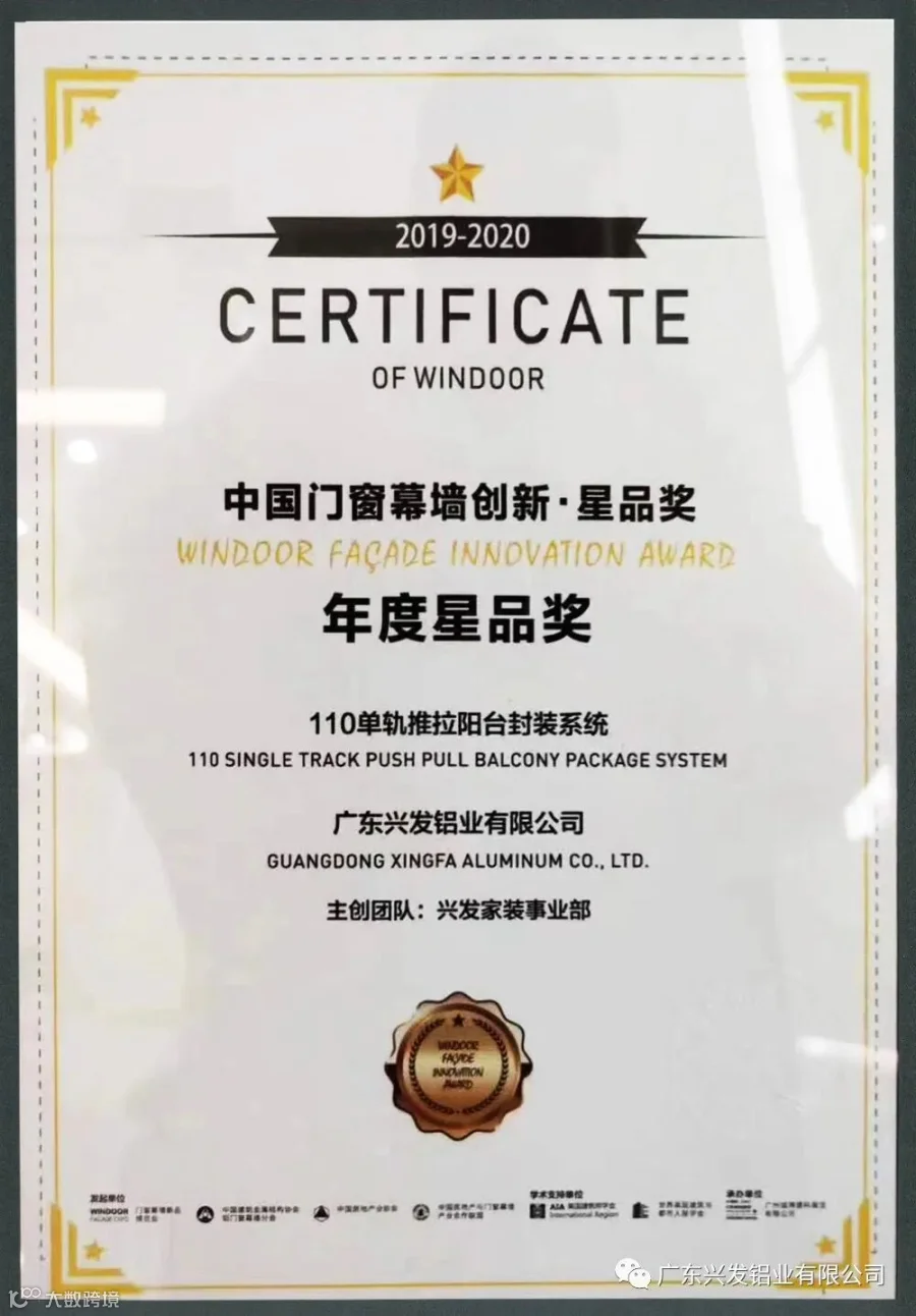 近日,第26届铝门窗幕墙新产品博览会暨中国门窗幕墙创新·星品奖颁奖典礼上,兴发帕克斯顿家居系统门窗110单轨推拉阳台封装系统以其功能性美观性实用性荣获创新星品奖,产品的技术、品质、节能、市场潜力等各方面的创新性得到业界和市场的青睐认可!