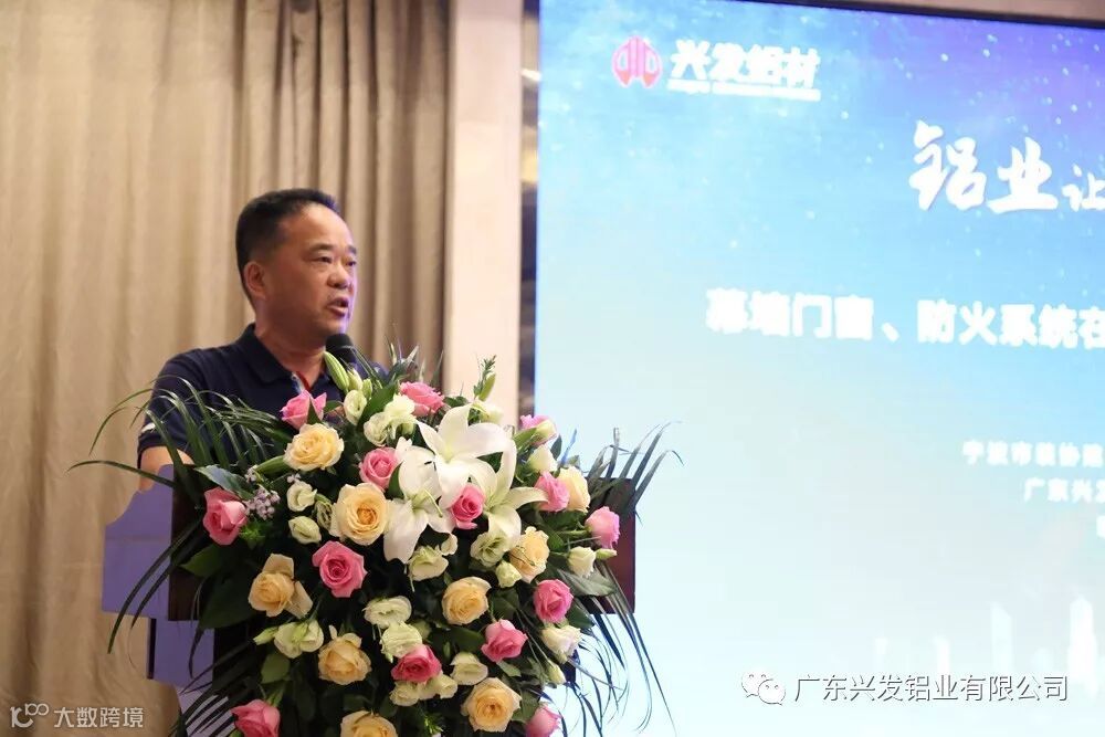 兴发铝业集团副总经理林严先生也莅临本次会议并致辞,林总感谢大家在百忙之中参加本次会议,并感恩宁波及各地经销商、客户朋友、协会院所长期以来对兴发的信任和帮助,同时林总强调此次选择以此方式在宁波召开技术交流会的战略意义,表示“合作共赢、资源共享已成为了当今社会发展的必然趋势,”希望这次会议能架起大家沟通的桥梁,使大家联系更加频繁,合作更加紧密,成效更加显著,共同实现建筑业的高质量发展。
