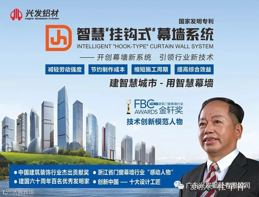 兴发智慧“挂钩式”幕墙系统,该系统结构标准化、系统化,公司配有各种系列的模具,为制作安装过程节省了许多宝贵资源和时间,符合“节能减排”的时代要求。该系统已在国内外几千顷幕墙中使用,面积总量约1000多万平方米,北京奥运村、北京国典大厦、深圳保税区长富金茂大厦三百多米高等均使用了该系统。这些工程均通过了“四性”检测和工程验收,经中国建筑科学院建筑环境与安全国家重点实验室抗震测试,能抵御百年罕遇的9级(620gal)强烈地震。抗超强台风更加有效,使城市的幕墙不再掉窗,安全可靠。