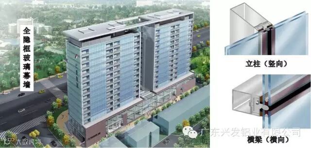 隐 框——金属框架的构件完全不显露于面板外表面的框支承玻璃幕墙。