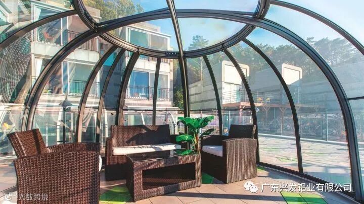 铝合金材质相比钢结构更轻,且延续了钢结构的坚固性和稳定性。铝合金可以很容易的被加工成圆弧等各种形状,与立面铝合金门窗系统能有机结合,有着较强的耐腐蚀性能,不易生锈,而且铝合金型材颜色多样,可以满足客户的个性化色彩选择,相对钢结构阳光房,其价位较高。