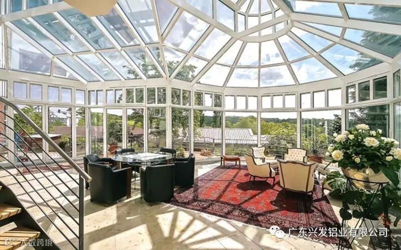 为了使阳光房更好的起到保温隔热的作用,符合人们生活方式,在整个阳光房建设的过程当中,现在常用的以断桥隔热铝合金为框架,使用断桥铝合金门窗,主要因为铝合金型材表面经过高温静电粉末喷涂氟碳工艺等的处理,边框采用密封形式,关闭严密,气密、水密性能极佳、保温性能优越;无污染、表面光滑、不褪色、不脱落;坚固耐用、不会被氧化,使用寿命也比较长,一般可以达到五十年左右。断桥铝门窗在生产过程中不仅不会产生有害物质,而且所有材料均可回收循环再利用,属绿色建材环保产品,符合人类可持续发展。