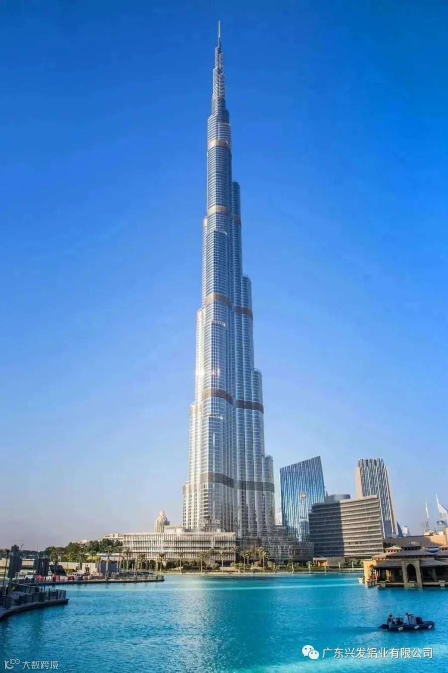 迪拜哈利法塔的建筑幕墙总面积为13.5万平方米,表面覆有28261块双层玻璃幕墙板,总面积达12万平方米,铝型材主要杆件6063-T5,6063-T6,连接件6061-T6,最大截面300mm,兴发铝业凭借过硬的产品质量和技术,获得了采购方的高度认可,成功为这个世界第一高楼订做熠熠生辉的“靓装”,合同采购额高达2600吨,相当于用铝材幕墙覆盖住300个篮球场大小的面积。并且所提供的全部是采用环保、节能、低辐射材料的产品,是低碳经济建筑的杰出代表。