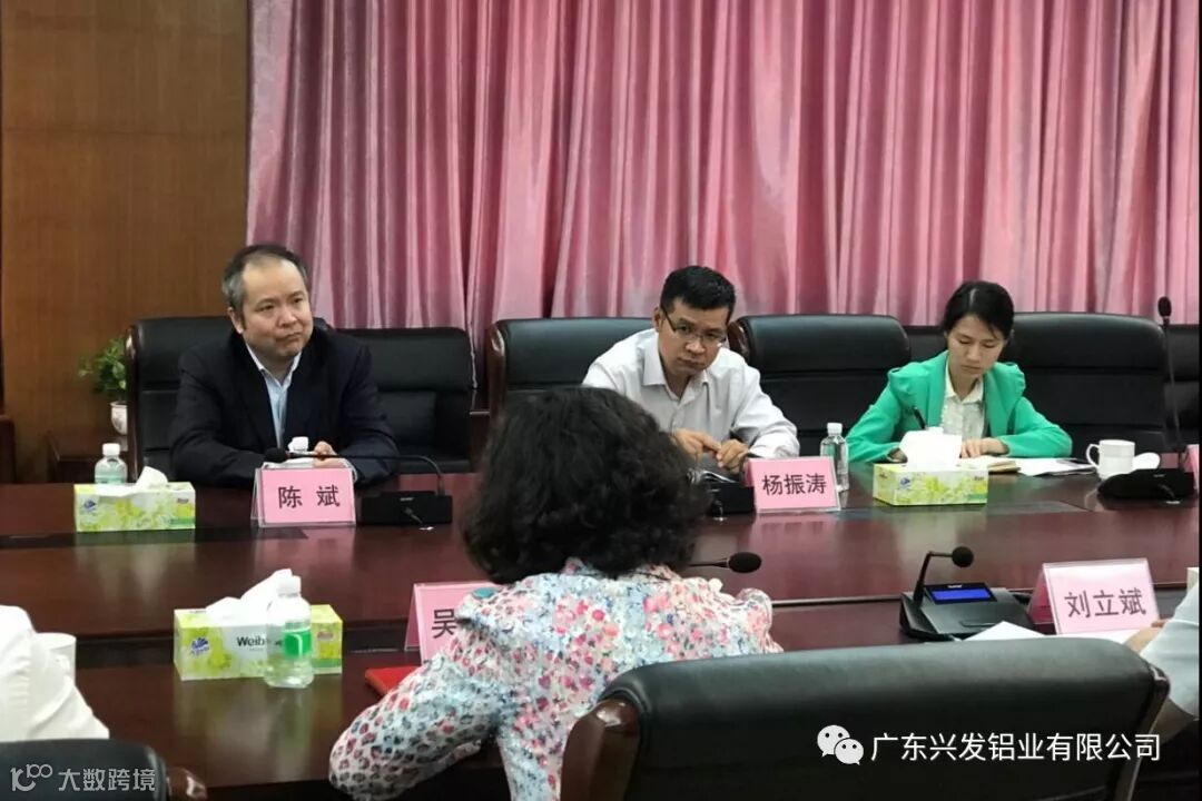 4月13日上午,中国进出口银行广东省分行陈斌行长一行莅临兴发铝业总部参观调研,并召开座谈会。会议由广新集团党委副书记、总经理吴晓晖主持。