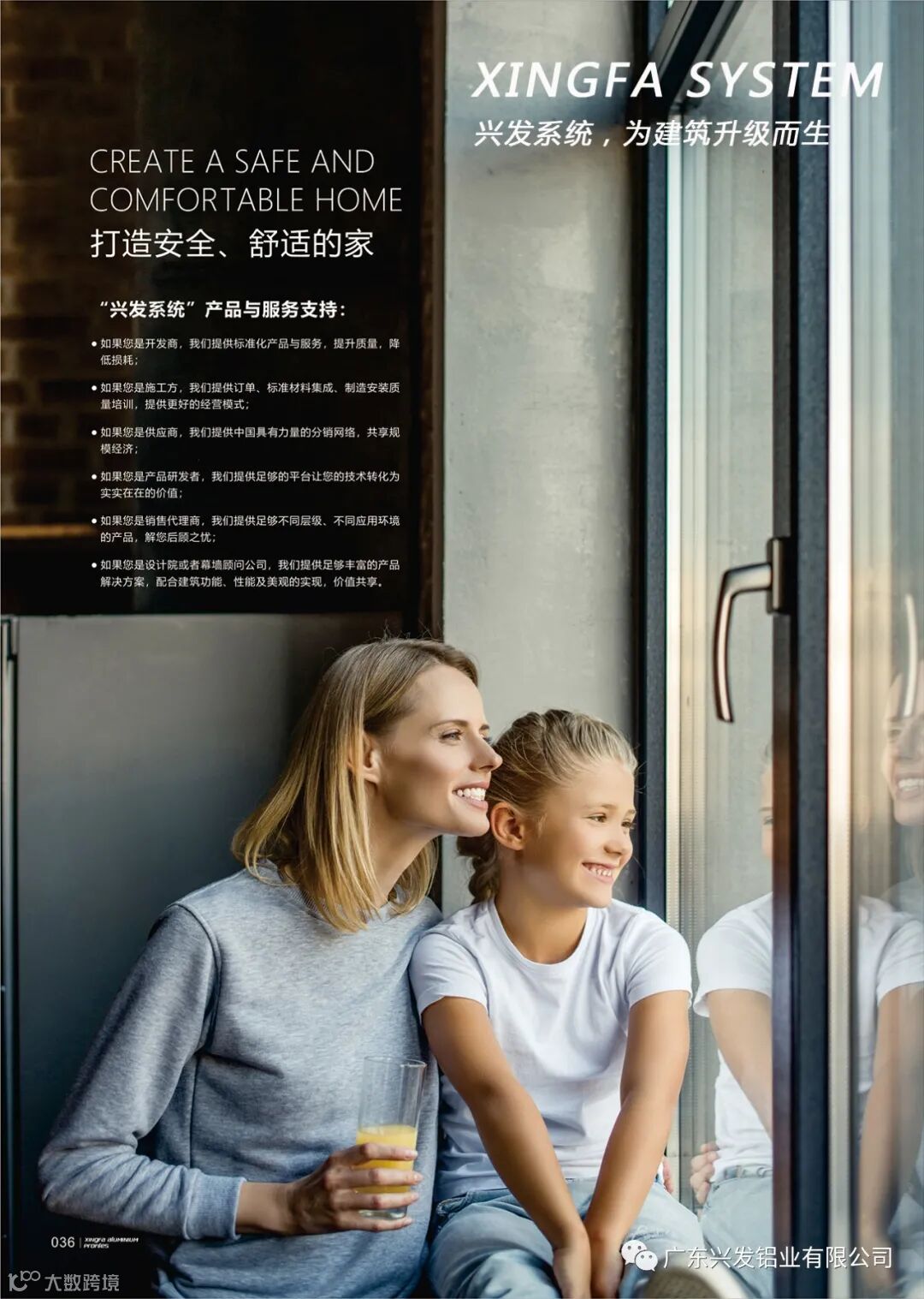 同年,也推出定位于工装建筑系统品牌的“兴发系统”,为建筑升级而生。“兴发系统”专注于建筑科技与产品的升级,产品完整覆盖建筑外立面所需,为品质地产商量身定制专属系统。“兴发系统”自2018年运营以来蝉联两届被评为是“中国房地产开发企业500强首选供应商·系统窗类品牌”,在全国的高端住宅、酒店、医院等工程项目如湘江壹号、华侨城海府生态一号、万科金域悦府、珠海毛林金湾大酒店、中大五院凤凰山院区等均使用兴发系统。