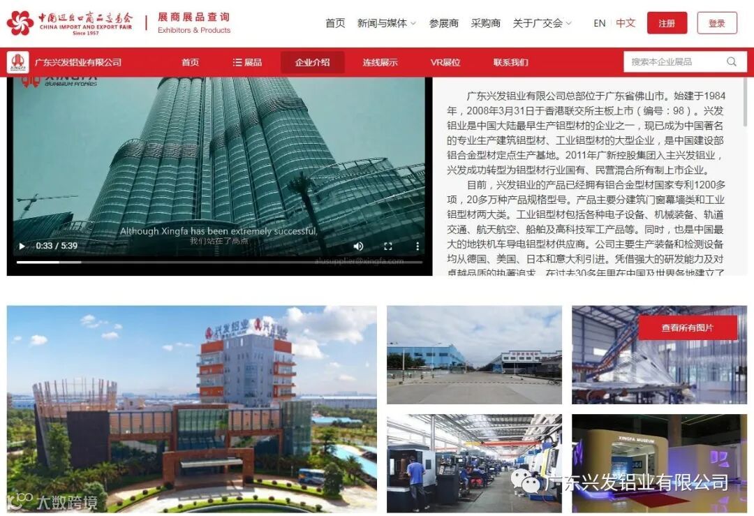 兴发铝业以广交会为平台,通过“云广交”借助连线展示、VR展位等形式,将网上产品展示、推介、供采对接、在线洽谈等融为一体,形成全天候一站式服务。为了更好吸引全球客商进行线上观展,兴发海外销售团队已提前通过社交媒体向粉丝推送最新信息,线上线下联动、点面结合的方式,向老采购商发送邮件通知,邀请各方采购商利用其渠道网络注册观展,为全球客户嫁接线上商贸的桥梁,实现足不出户轻点鼠标即可全方位、多角度看工厂、实验室、车间生产线,逛展厅、选产品,了解更多行业知识等,客户逛展的时间成本大大降低,频次大大增加。
