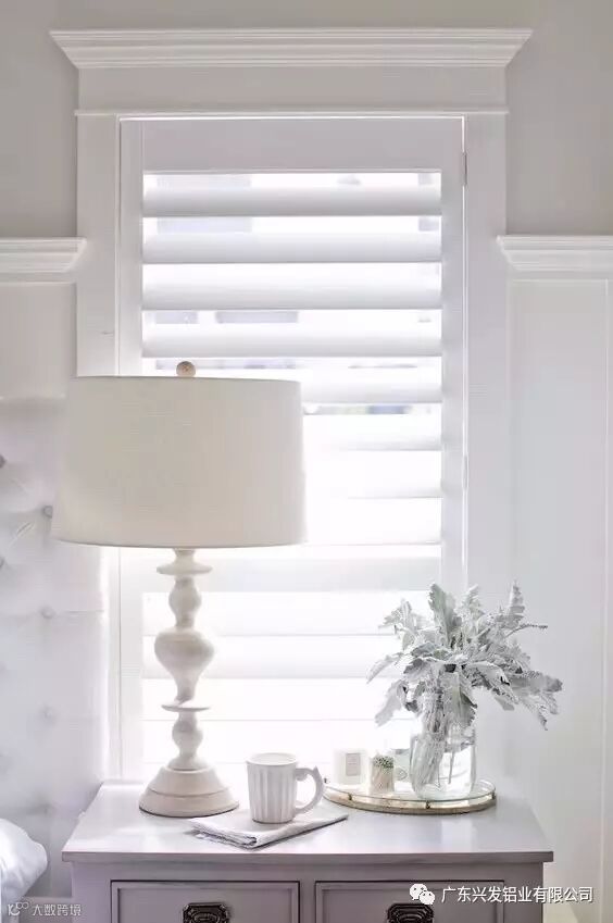 铝合金百叶窗使用手动旋钮或推杆电机带动内部连接杆移动实现铝合金百叶窗叶片的翻转功能,当叶片角度为90度时,可获得最大的通风效果,当叶片角度为15~25度时,可有效防止室外的窥视,当叶片完全闭合,可阻挡阳光直射和暴雨的侵袭,打开之后窗外景色一览无余。