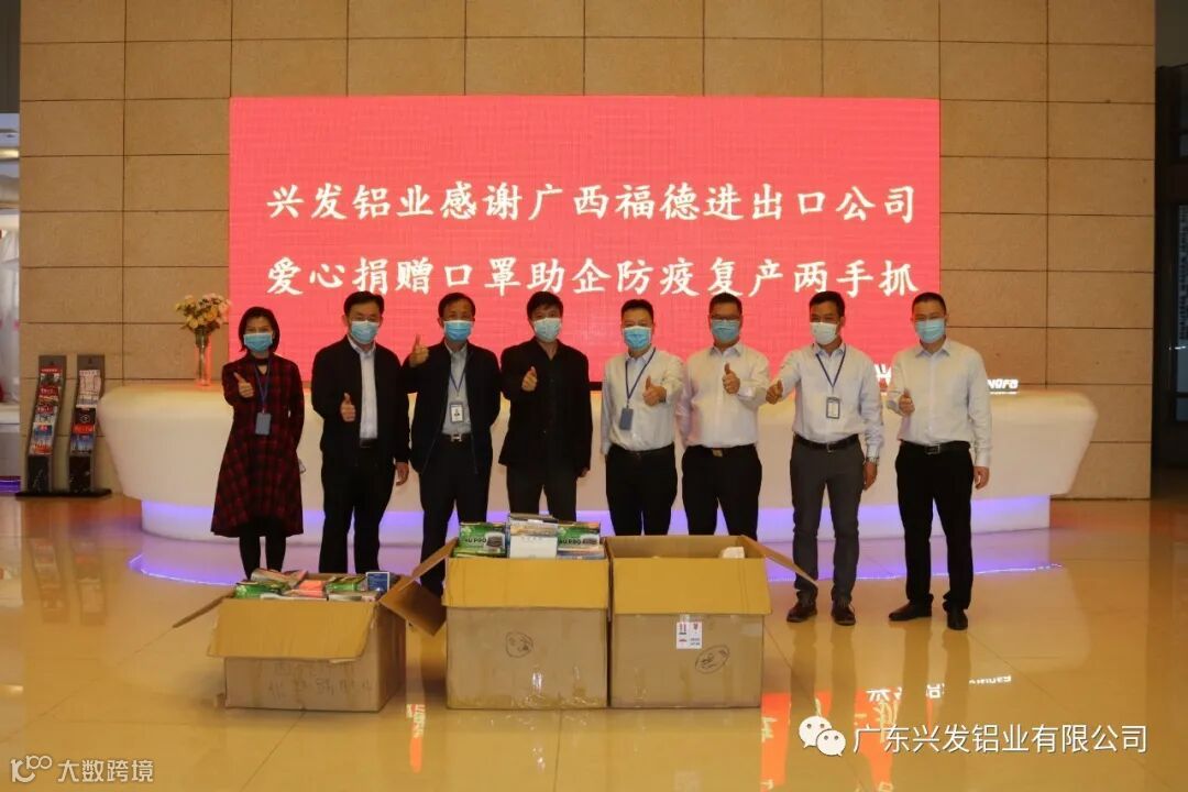 为助力兴发铝业防疫复产两手抓,3月3日上午,兴发铝业越南经销商广西福德进出口有限公司再次向我企为奋战在防疫工作及生产办公一线的工作人员捐赠一批医用四层口罩,确保兴发防疫复产顺利开展。兴发铝业领导一行代表公司全体员工对越南经销商的再次爱心捐赠表示由衷的感谢。