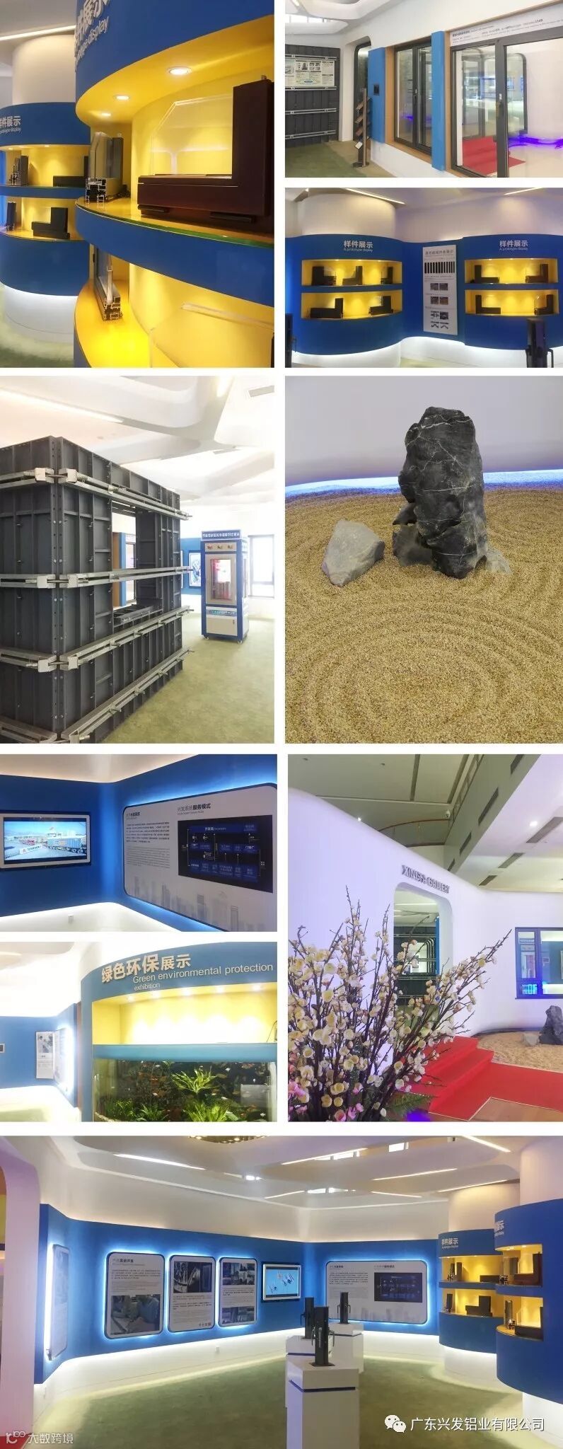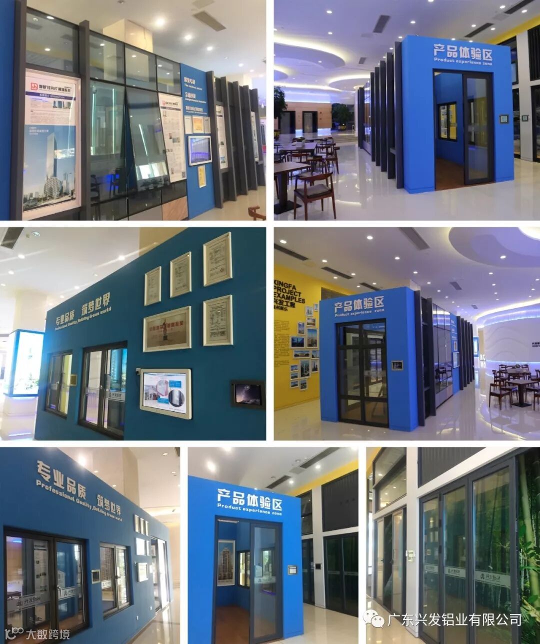 放置了兴发样板门窗包括“美狮隆门窗系统”产品以及国家专利“智慧挂钩式幕墙系统”产品等,可供客户现场对产品进行参观和考察。