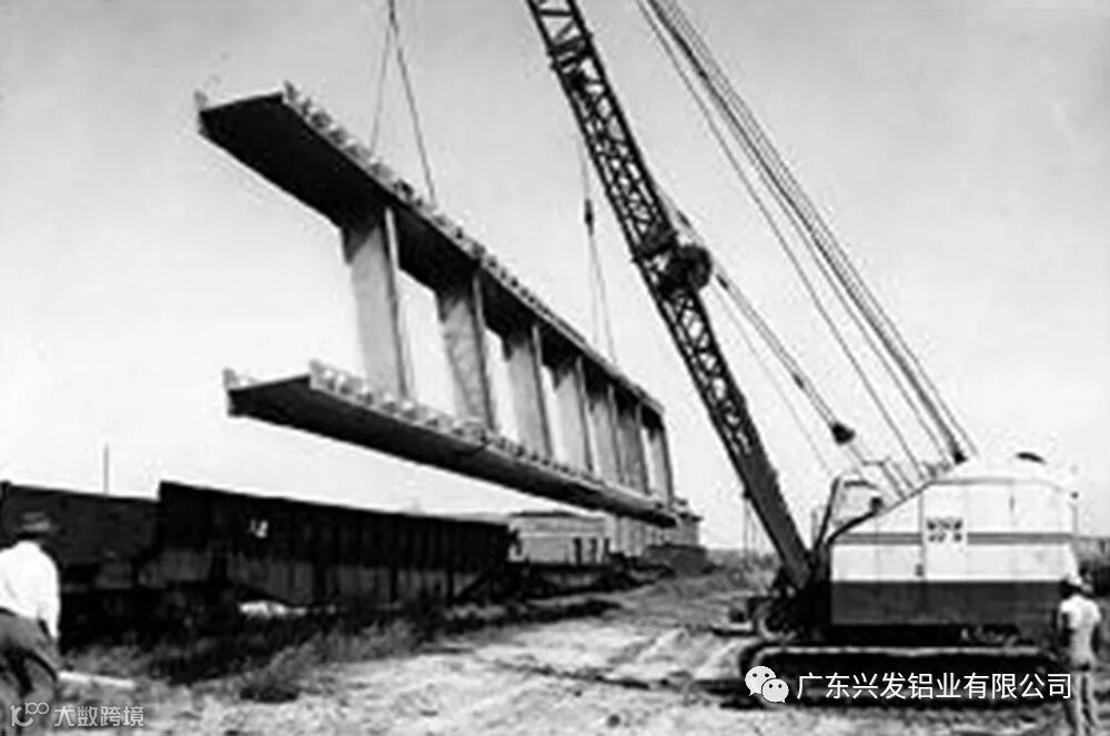 铝合金材料应用于桥梁工程已有80多年的历史。在国外应用相对成熟。世界上首个铝合金在桥梁上的应用是1933年在美国匹兹堡斯菲尔德区一座跨河桥的铝合金桥面板上。10多年后,在1949年,加拿大在魁北克省阿尔维达建成了一座跨越塞右奈河,单跨跨径达88.4m的铆接铝拱桥,该桥是世界上第一座全铝合金结构桥梁,随后大量桥梁的建设为后人建造铝合金桥梁提供了宝贵的经验。