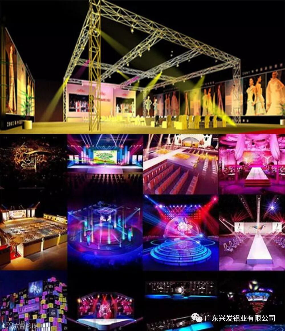 铝合金桁架一般是由6061-T6或6082-T6铝材经过切割,加工,焊接,磨光,喷漆等处理组合而成的一种广泛应用于演出展览,活动庆典,背景布置,灯光音响吊挂等系统。可以根据场地,搭建成各种大中小不同规格的桁架系统,而且可以按具体要求进行灵活组合。质量轻便,便于搭建及运输,铝型材的抗压及防腐耐用能力极强,可重复使用,视觉冲击力强。