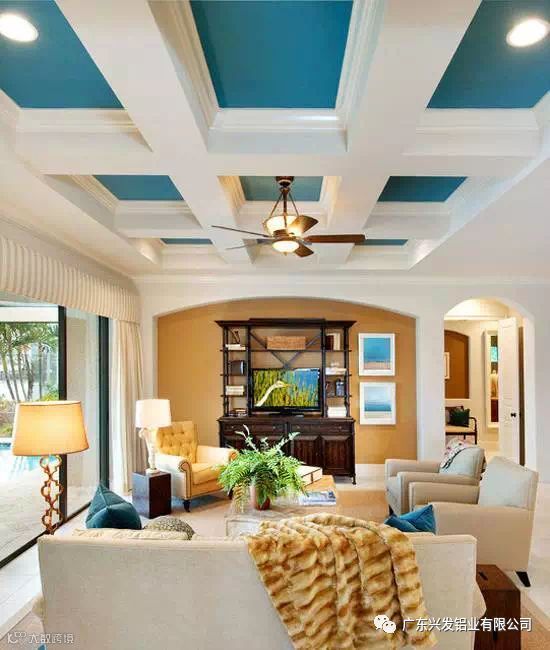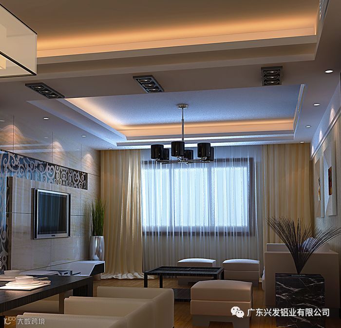 这也属于平板吊顶的一种,但是造型要比平板吊顶生动和活泼,装饰的效果比较好。它的优点是光线柔和,轻松和自然。