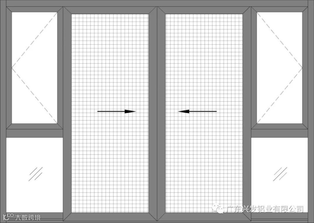 外框、中梃为同一支料,解决内外开不同需求;