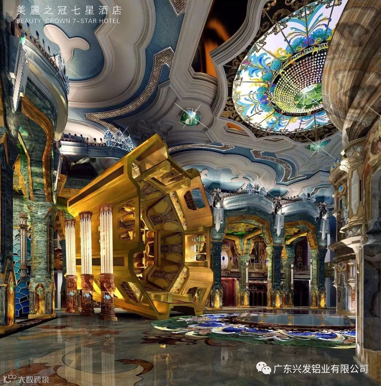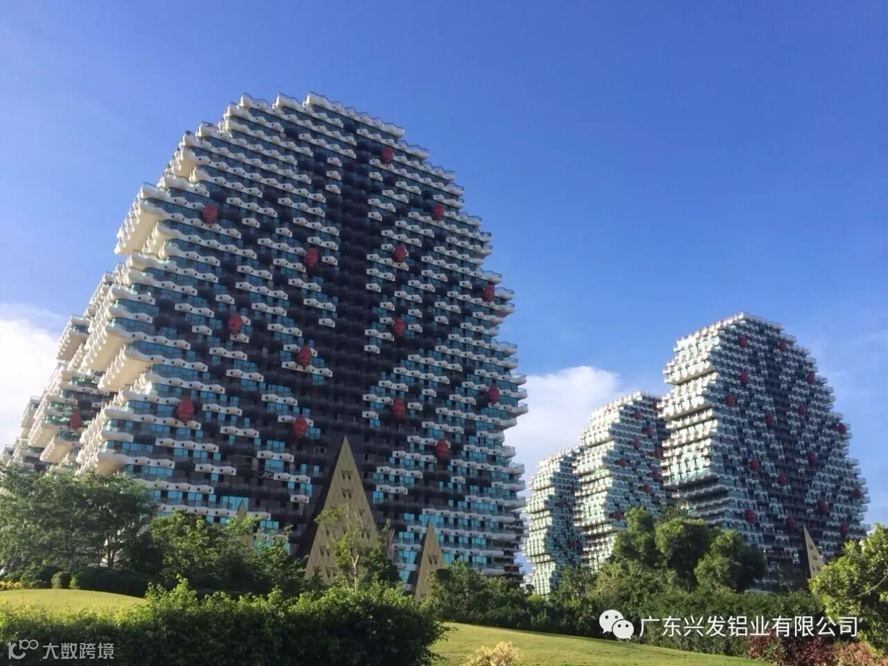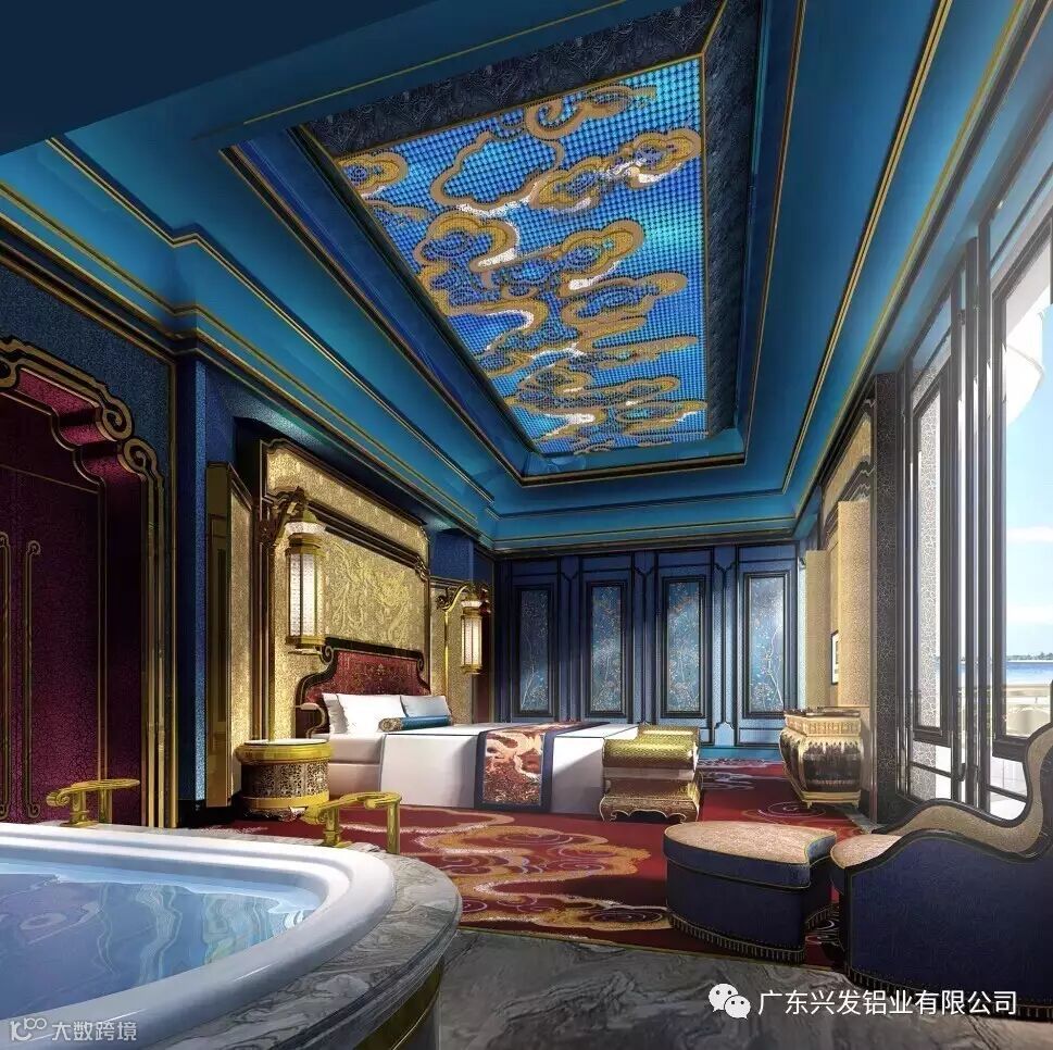 “美丽之冠”复杂的外立面结构,除玻璃幕墙和提升推拉门系统是常规的幕墙系统,其余的分别为双曲铝单板系统、栏杆系统、灯笼体系统等,无论是设计制作还是施工安装难度都非常高,其中双曲铝板的设计及加工最为困难。项目中所用到的配套建筑材料也都由国内一线品牌提供,其中使用的铝型材由兴发铝业供货。