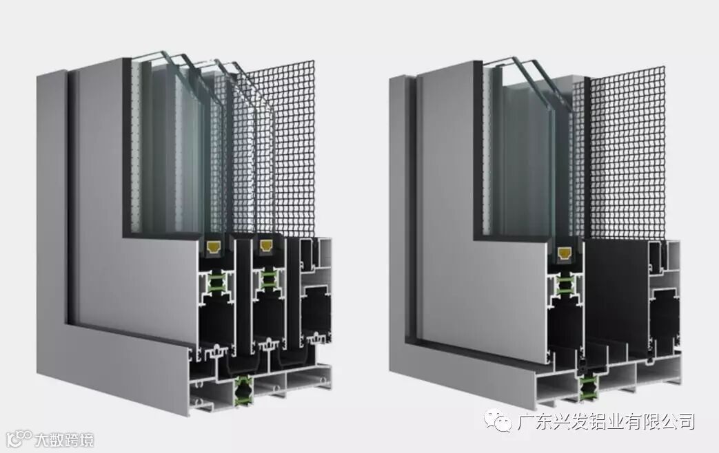 90系列隔热推拉门系统,为机械复合式三腔结构,选用了14.8mm PA66隔热条。双轨的边框深度为90mm,三轨边框深度为137mm,一体化设计的推拉纱门,选用毛条、胶条组合式密封。