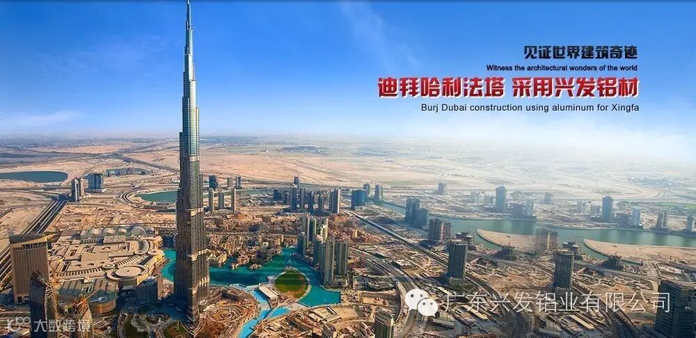 ▲世界第一高楼哈利法塔,原名迪拜塔,总高度达到828米,162层楼高,表面覆有28261块双层玻璃幕墙板,总面积达12万平方米,相当于用铝材幕墙覆盖住300个篮球场大小的面积。哈利法塔光彩外表幕墙大气雄浑,充分展示其世界第一高楼风采,哈利法塔的所有幕墙皆为中国制造,而其铝型材用料为中国广东兴发铝业提供。