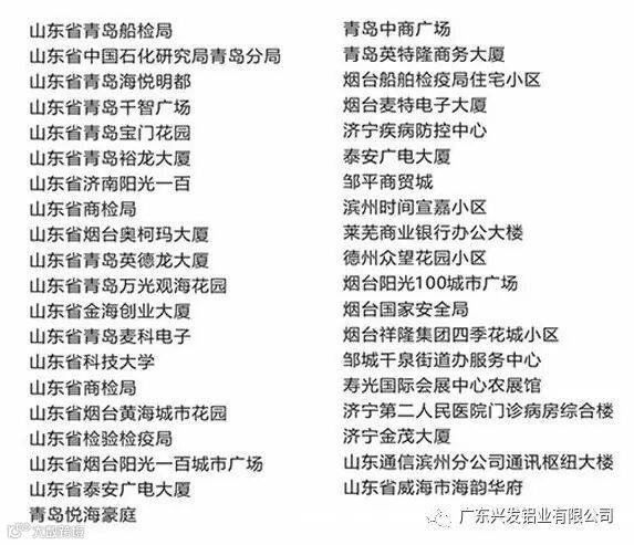 ✤山东省更多使用兴发铝材工程案例名录(部分)✤