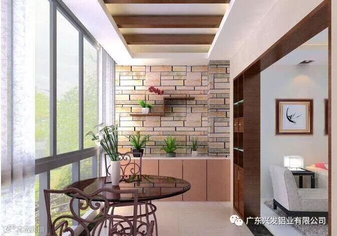 木窗易变形、被虫蛀、造价高等缺点。倘若预算充裕,推荐断桥铝合金窗或铝包木。因为断桥铝是在普通的铝合金型材的基础上加了隔热层,使它具有了很好的隔热性、隔音性、防火性、水密性、防腐性、保温性等,断桥铝是非常理想的阳台窗户材料。如果预算不多,则建议选择塑钢窗。不过铝合金窗相比塑钢窗来说,耐久性,稳定性,坚固程度更好。特别是封阳台,阳光房都是大面积的,在整体抗变形程度上铝合金的优势是普通塑钢没法比的。此外,阳台的整体风格,也决定了门窗型材。