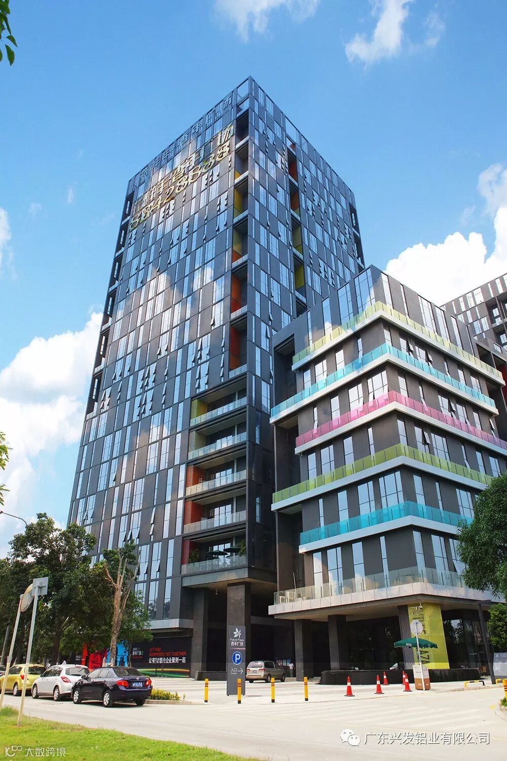阿里巴巴总部大厦作为全国最大的电子商务办公大楼,位于深圳南山后海中心,是以甲级写字楼为主的高层建筑。楼群设计重峦叠加、错落有致,主体高度最高为78.4米,虽不以高取胜,但气势十足。工程地下室3层,地上由4栋塔楼及附属裙楼组成,塔楼间通过连廊(桥)连接,总建筑面积约12万平方米,使用的是兴发铝材。