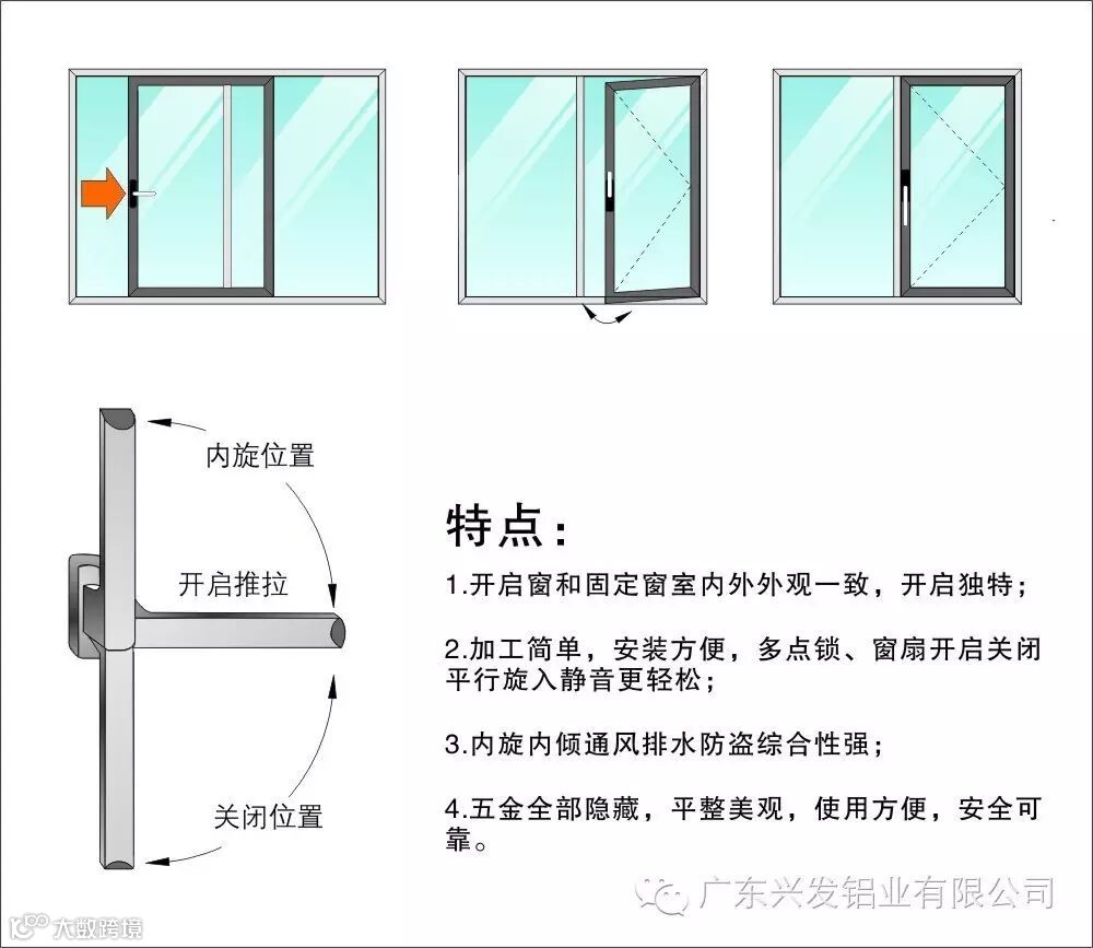 兴发隔热节能旋开内倒推拉窗