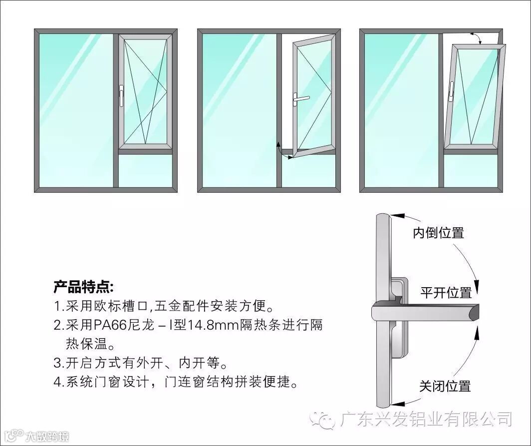 兴发隔热节能内开内倒窗