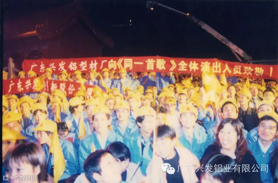 兴发铝业作为当时全国有名的铝型材厂,也带领全体员工出现在中央电视台《同一首歌》的晚会上,时隔多年,每当看到这一幕是否都令你想起在很早很早之前,兴发就以公司的名义积极参与了文娱公益活动。